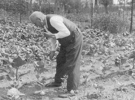 ... Eines Tages, mitten im Krieg, Papas Tabakplantage stand in voller Blüte schellte an unserer Haustür ein Zollbeamter aus Kassel. Er erklärte, er habe den Auftrag, die Tabakpflänzchen in unserem Garten zu zählen und Papa müsse eine bestimmte Summe Geldes pro Pflanze als Zoll bezahlen. Offenbar hatte ein neidischer Nachbar ihn beim Zoll in Kassel angezeigt. Grimmig blechte Papa Konrad das Zollgeld. Den ellenlangen Fluch, den er dem Zollmenschen nachschickte, kann ich hier nicht wiedergeben. Mit Spargel wäre das nicht passiert; doch in jenen Notzeiten war Tabak Marke Eigenanbau oder, wie scherzhaft gesagt wurde, Bahndamm, letzter Hieb für passionierte Raucher oft die einzige Möglichkeit, doch an ihren geliebten blauen Dunst zu kommen. Münster Dülmen, Nordrhein-Westfalen; 1944 Hühnerfutter