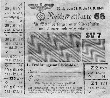 macht erfinderisch Während der Bewirtschaftung im letzten Weltkrieg und noch einige Jahre danach war selbst das Leben auf dem Lande schwer geworden. Da war Schmalhans Küchenmeister. Die Nahrungsmittel waren rationiert, Brennstoffe schwer zu beschaffen. Brot, Fleisch, Fett, Mehl, Zucker gab es nur auf Bezugsmarken in verordneten Mengen. Und das auch nicht immer. Also blühte der Tauschhandel. Es war eine erbärmliche Zeit. Darum wurde in allen Lebenslagen versucht, dem Gesetz und seinen Hütern möglichst auszuweichen. Wer im Dorf irgendwie konnte, hielt sich als Lebensversicherung ein Schwein oder auch mehrere. Von Berufs wegen besonders der Landwirt. Damit der Fleischmangel im Lande gerecht verteilt werde, war angeordnet worden, daß die Bauern ihre Viehbestände kontrollieren lassen mußten. So wurde jedes Stück Vieh registriert. Auch wenn ein Schwein oder ein Rind einging, wurde es als Todesfall notiert und der Kadaver von der Abdeckerei in Langendiebach abgeholt.