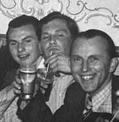 Foto zum Text.Helmut Rammel bei einem Umtrunk mit seinen Kommilitonen.