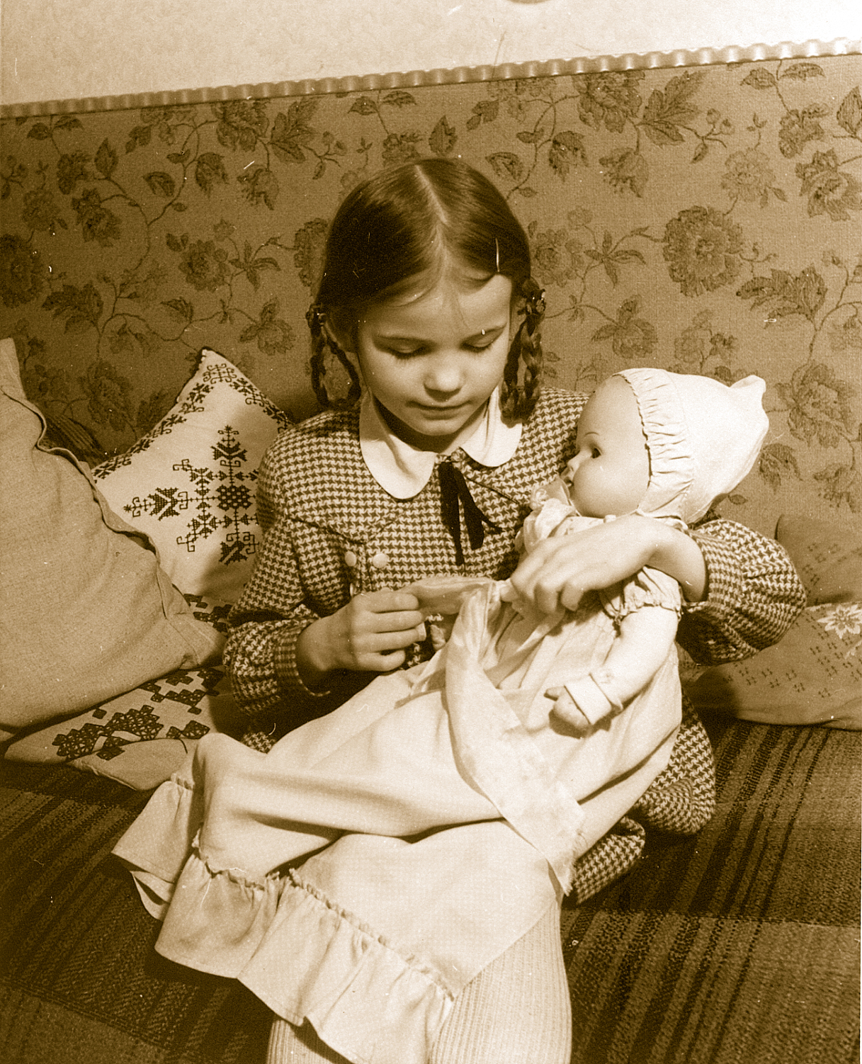 Foto zum Text.Mein Weihnachtswunsch, eine Babypuppe mit Schlafaugen und Mama-Stimme, ist zu Weihnachten 1956 in Erfüllung gegangen.