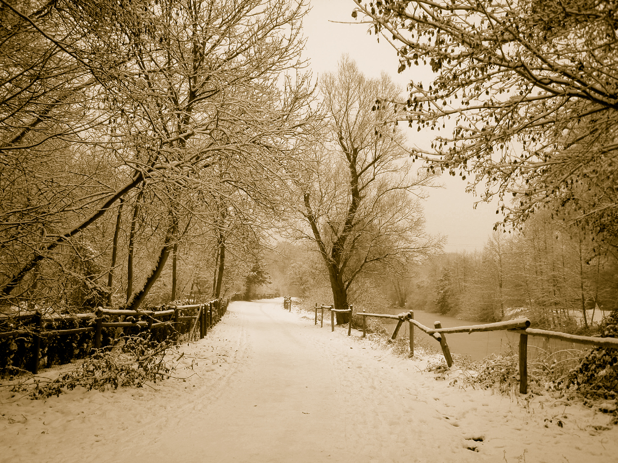 Foto zum Text.Verschneiter Weg parallel zum Horlachgraben.