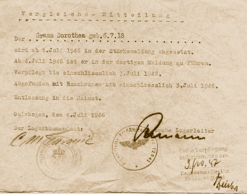 Foto zum Text.Mittelung über die Entlassung in die Heimat.