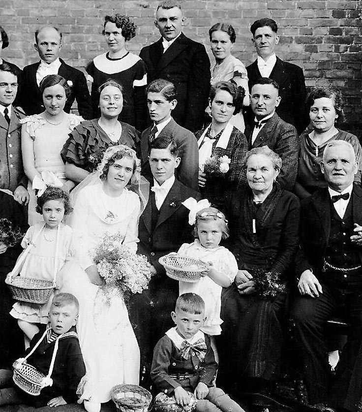 Ich stehe als Blumenmädchen rechts neben Onkel Walter.Foto Hochzeit herunterladen »